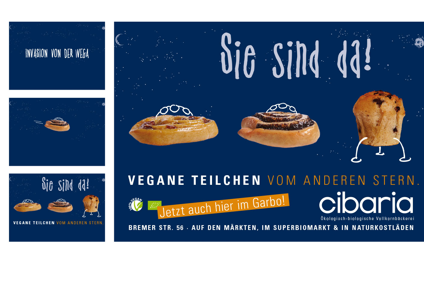 Für cibaria gestalten wir die unterschiedlichsten Materialien – von Prospekten und Anzeigen über Produktkataloge und Preisschilder bis zu Messeständen oder Verkaufswagen.