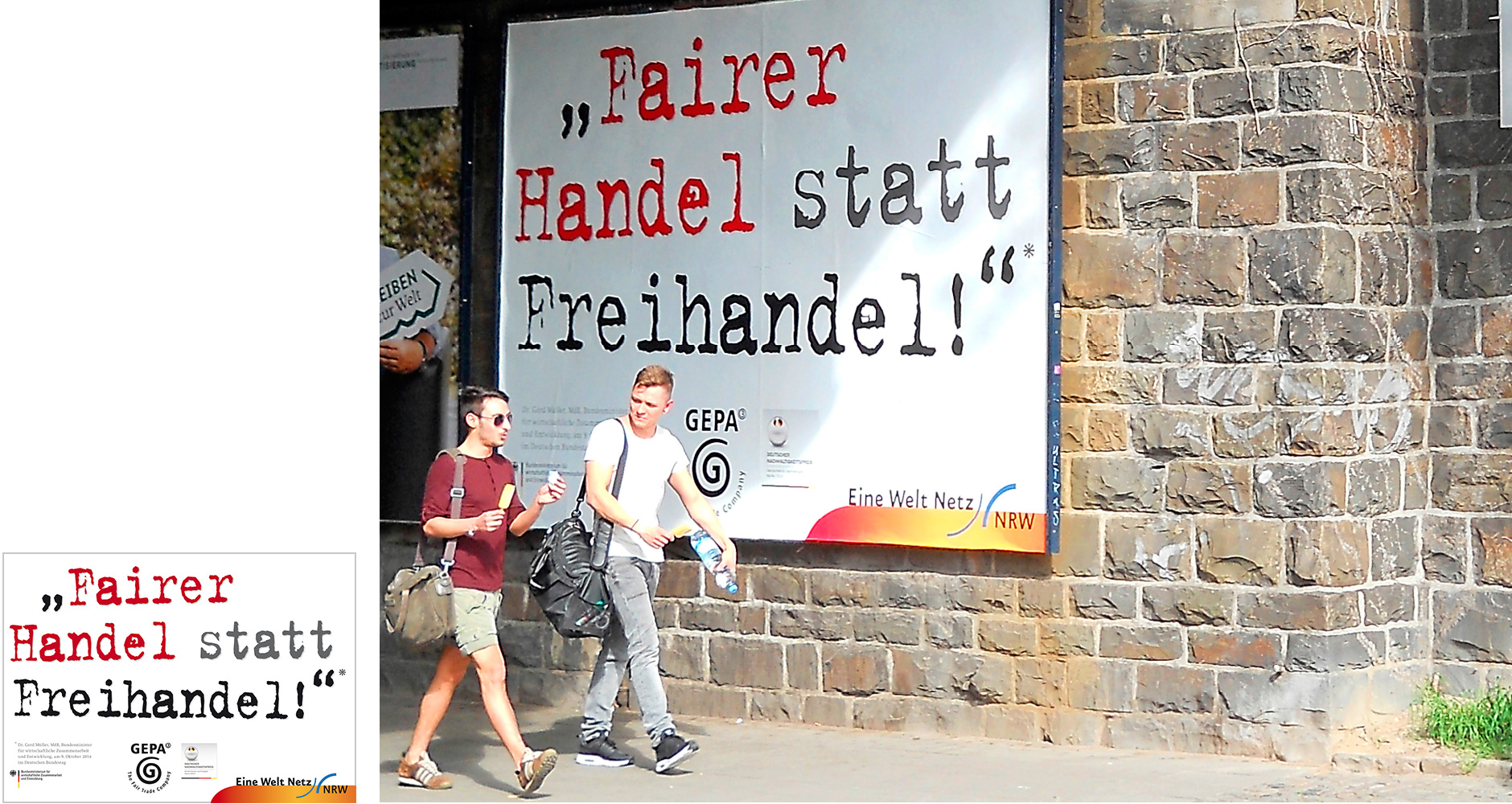 Große Fläche - klare Botschaft: Immer wieder gestalten wir auch Großflächen-Kampagnen, oft zu Eine-Welt-Fragen wie dem Fairen Handel, einem Thema, das uns von Beginn an beschäftigt hat.